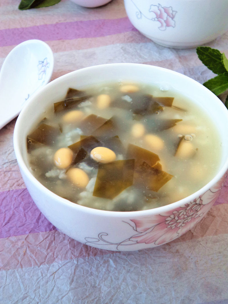 7:20分钟后海带入锅同煮,其间还要适时搅动。