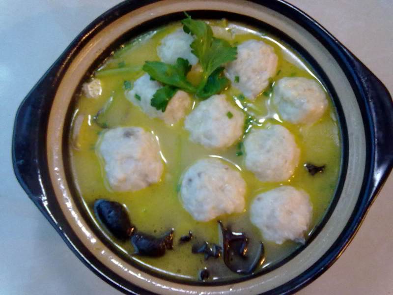 12:第二天用鱼骨熬的高汤,加点冬笋,黑木耳,最后加入鱼丸,噔噔噔噔,开锅上菜喽!