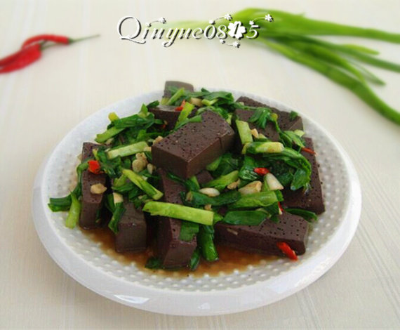 韭菜炒鸭血