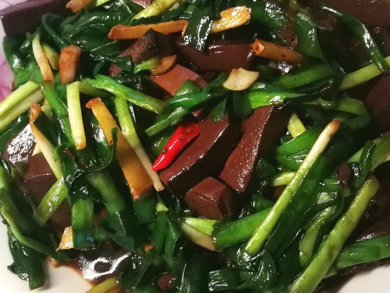 7:美味的韭菜炒鸭血可以上桌了!