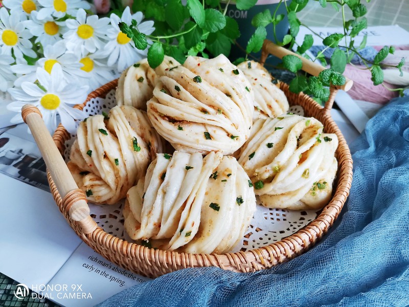 13:鲜香松软的芝麻葱香花卷就做好了。