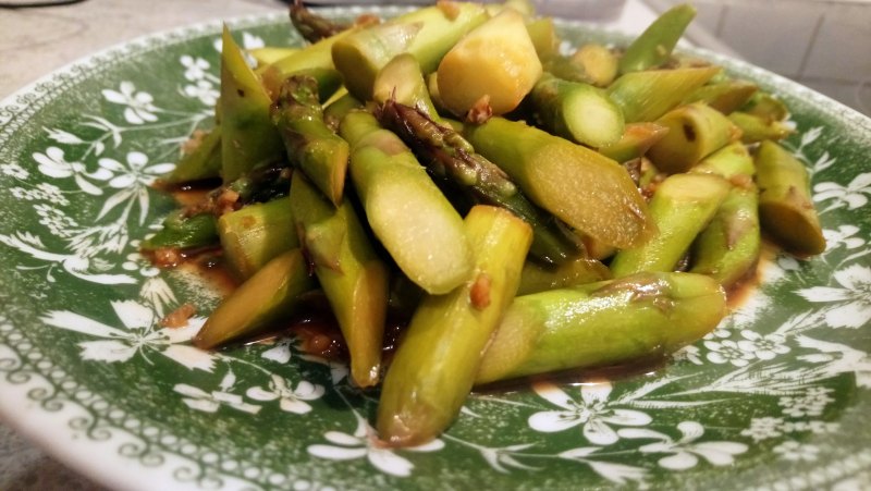 5:加芦笋翻炒。加盐,加醋。醋可多加一点点。