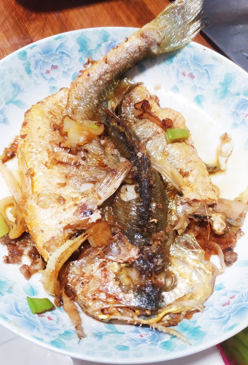 一开始大火煎片刻,表皮略带焦黄色再调成小火慢煎,利用锅内的热力渗透鱼肉内部,这样可以保持鱼皮完整,鱼肉熟透,表皮焦香酥脆。酱油不可加太多,少许提色增香即可,否则太咸