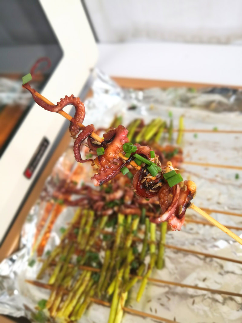 9:鱿鱼须不建议烤太久,不然太老了。