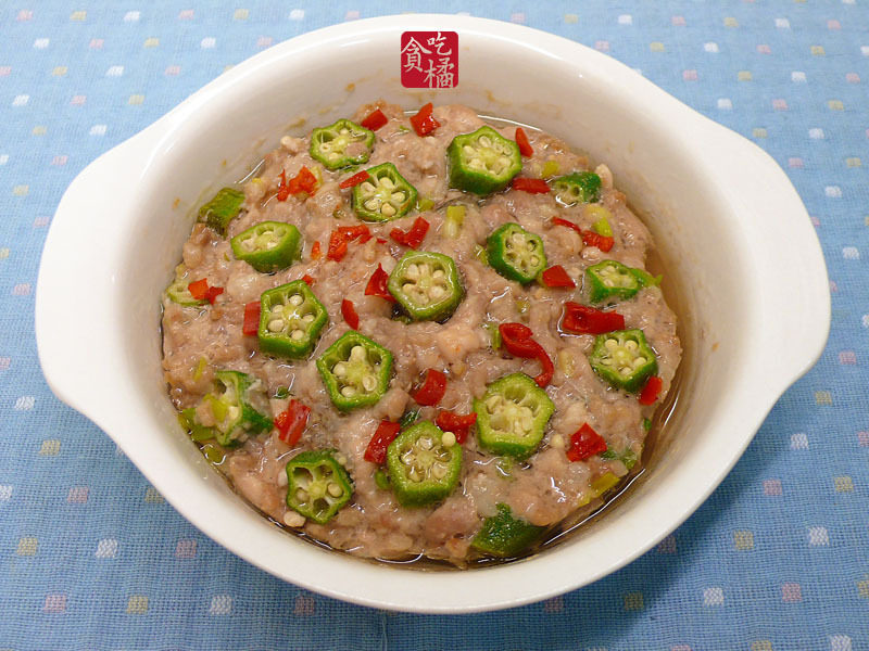 食材︰绞肉250g;食材︰秋葵8支;食材︰咸鱼1小块;食材︰葱1大匙;姜末适量;