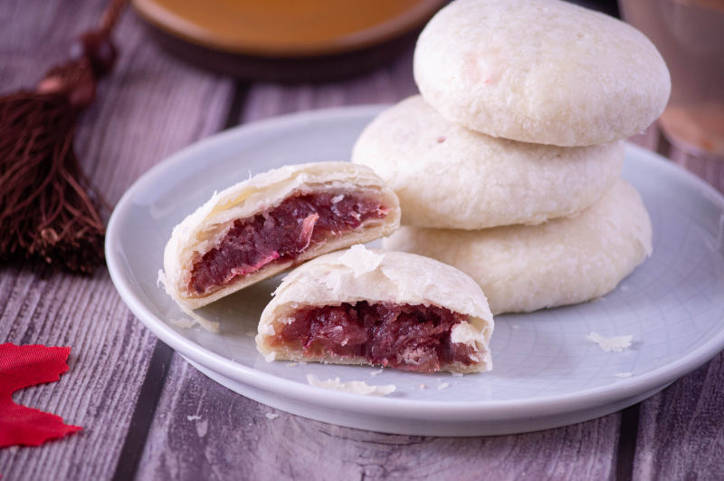 1.请根据自家烤箱调整温度和烘烤时间2.做酥皮类的,需要足够的耐心,手法也很重要!在做油皮和油酥的时候,速度要快,因为手温太高或是揉得太久,猪油会液化,影响面团效果。3.馅料也可以换做其他喜欢的馅料。4.此配方是做10个58克的酥饼的量。可自己根据比例调整
