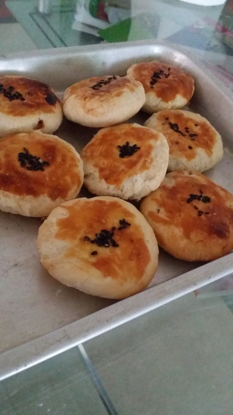 16:收口朝下,放在烤盘上,压扁一下面饼。