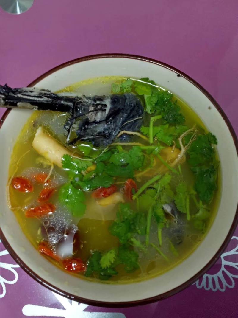 4:放入清水(大概2500mL),汤煲到1小时放入枸杞继续煲,全程1.5小时即可。