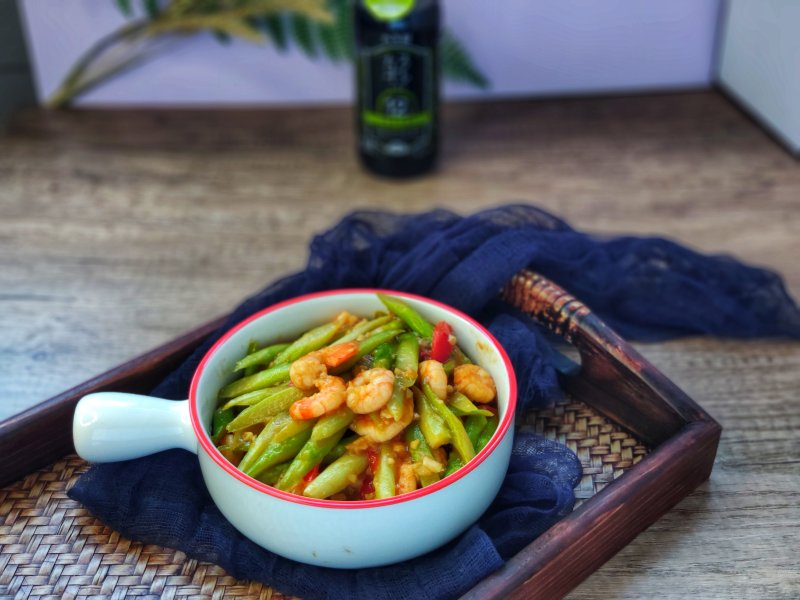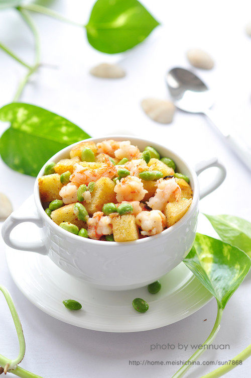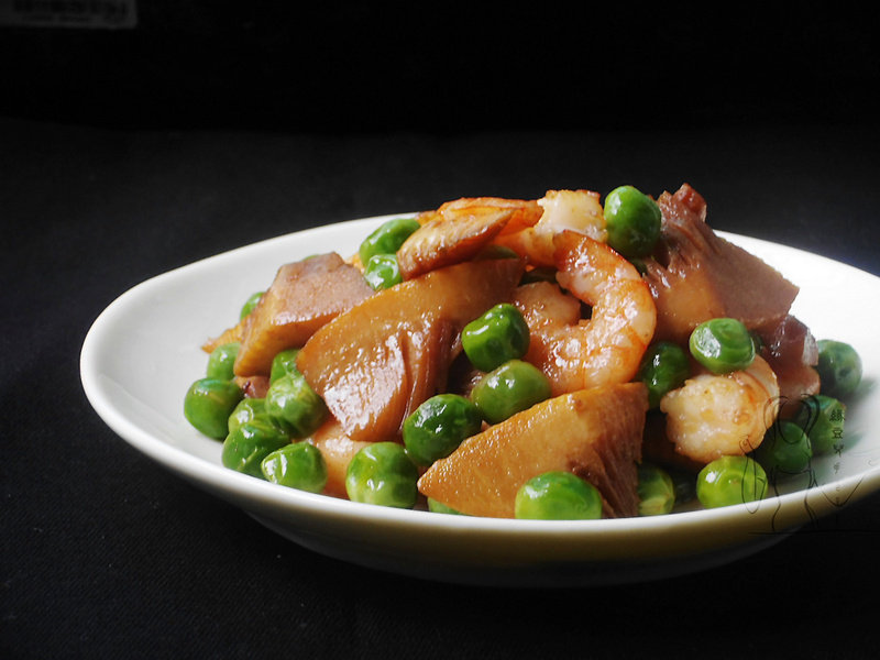 10:收汁后加入虾仁和豌豆炒匀,加盐调味即可出锅