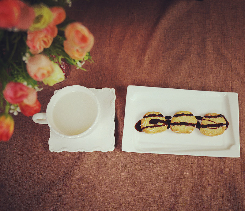 10:饼干周围的边上色即可,冷却透了还可以蘸上巧克力酱享用喔!