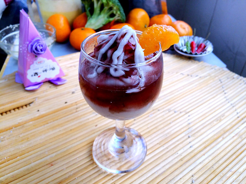 10:一杯夏威夷风情的芋头蓝莓圣代杯就完成了,很有情调吧,营养又好吃!