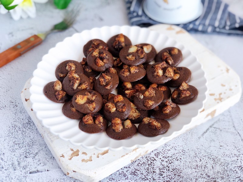 10:把做好的坚果摆放在饼干糊上,2-4粒。