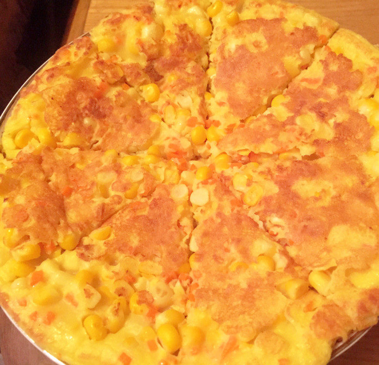 1:前面我都忘照了、把玉米用刀剋下来、用清水洗洗、打两个鸡蛋搅一下、放白糖一勺、把胡萝卜切成细丝、再切成小小块放进去搅、均匀了在放白面适量、凉水一点就行了、搅均匀。