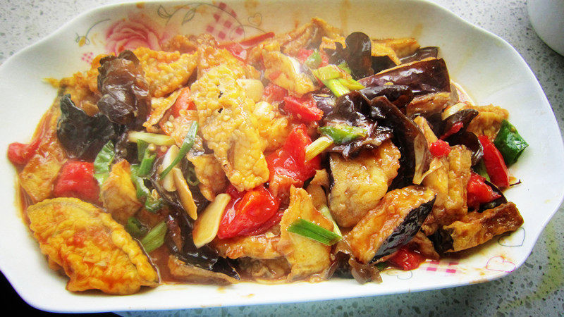 8:倒入炸制好的茄子,到蚝油生抽,少许盐,煸炒.....