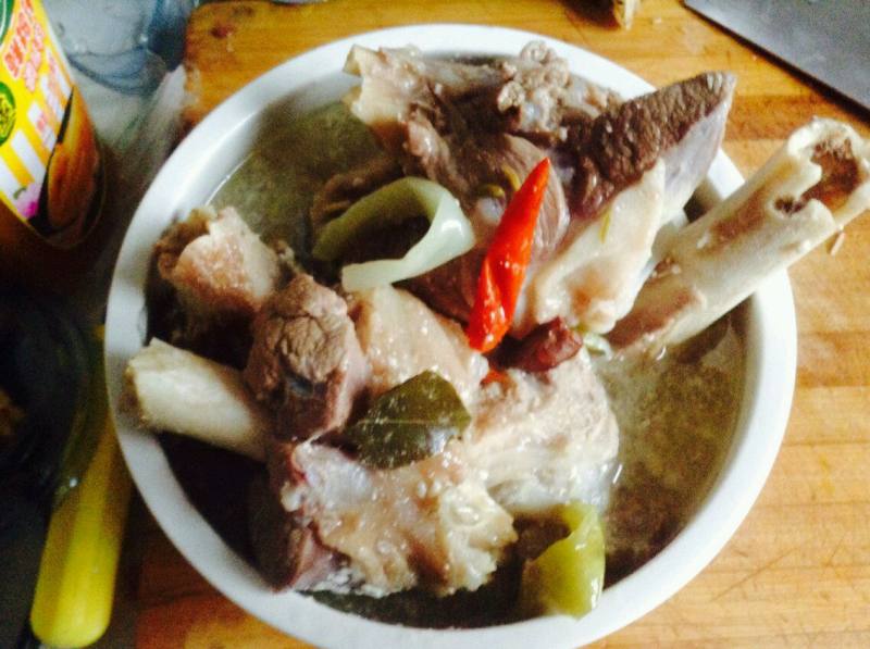 1:羊棒骨浸泡冷水中20分钟,祛除血水