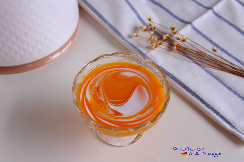 10:之前预留一部分芒果肉出来也好,打好的糊真的是糊,倒进碗里不能一下流动成平面的。