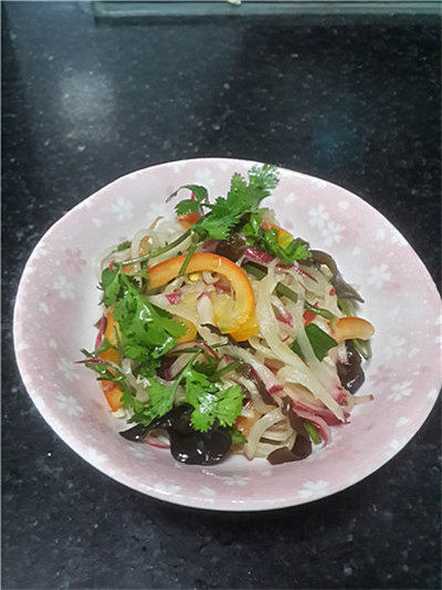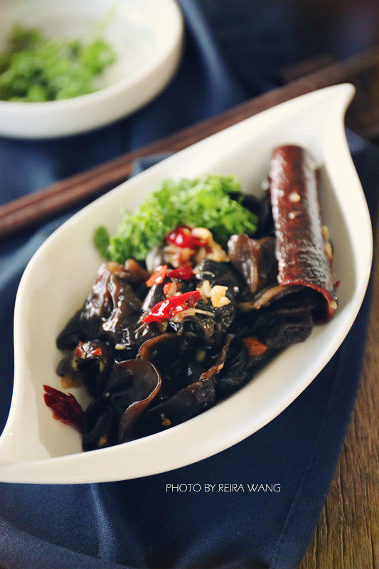5:将拌匀的木耳搁置1-2分钟,让木耳入味,就可以吃了。