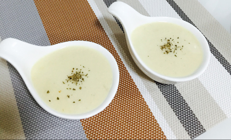 5:打好土豆浓汤倒入小奶锅中,再加适量牛奶调整浓稠度。