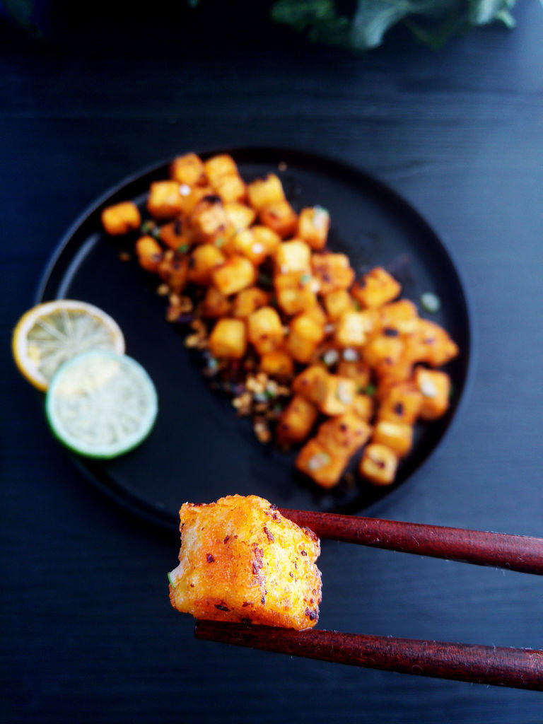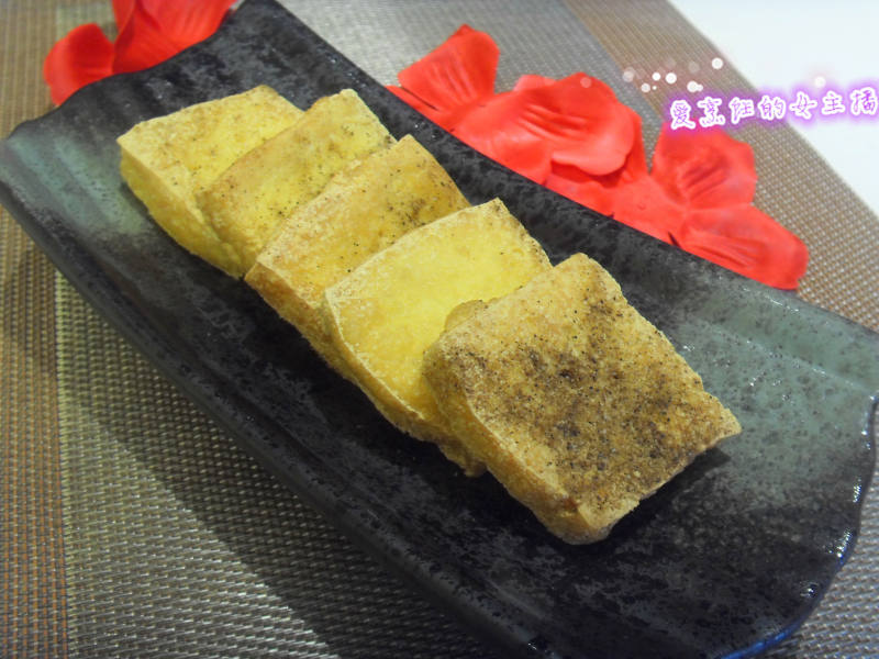 1、这道菜的原料必须是卤水豆腐,石膏豆腐炸不出这种效果。2、喜欢辣的可以撒上些辣椒面。