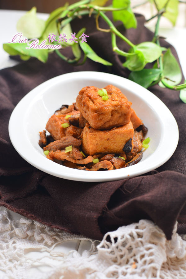 1:材料北豆腐600克猪肉200克香菇5个调料调和油一碗家乐鸡粉2勺胡椒粉少许生抽半勺食盐2克味精1克