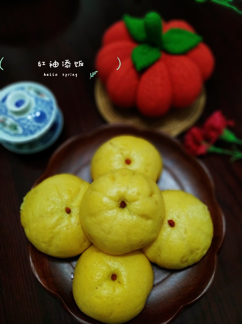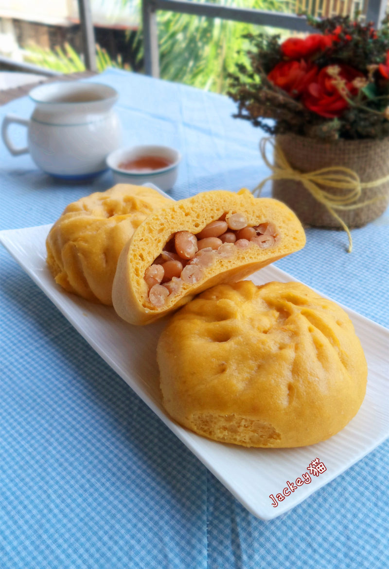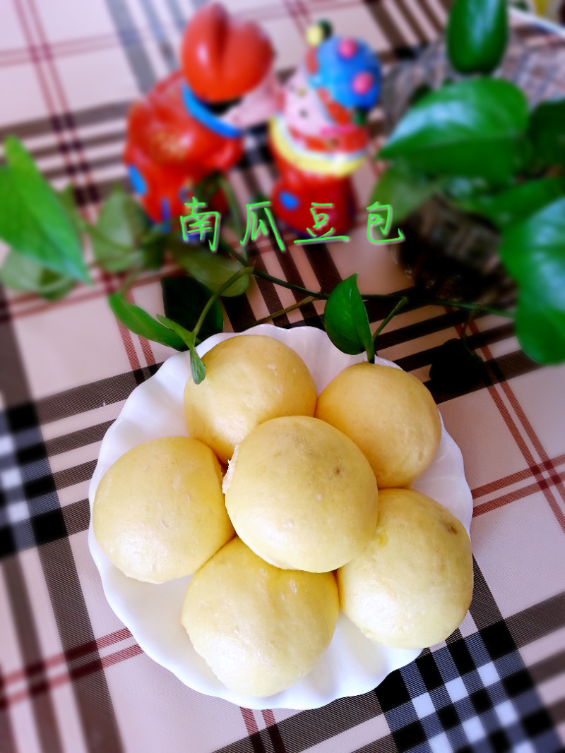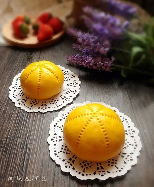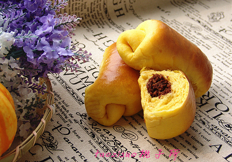 南瓜泥约380克;面粉500克;酵母5克;豆沙馅料适量;水适量;