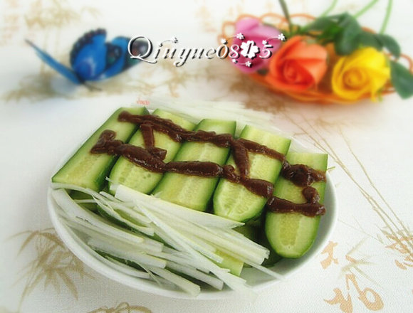 甜面酱适量;葱适量;