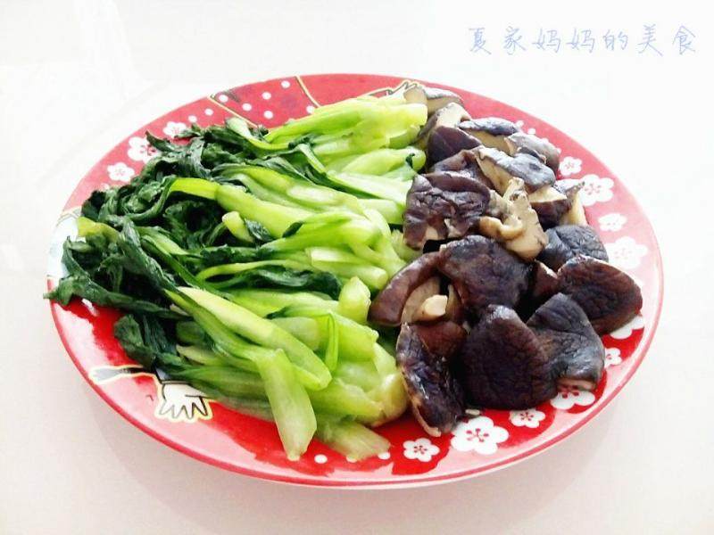 1:将青菜香菇洗净,香菇一分为四切成块