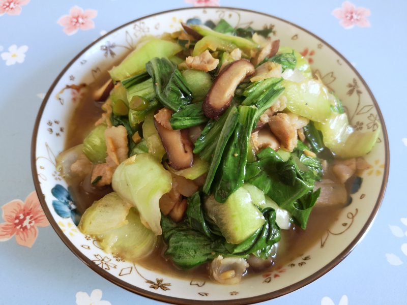 香菇油菜炒五花肉