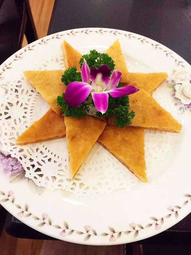 3:平底锅倒入少许油,油烧热,将饼放入锅中煎至两面金黄即可。之后就可以切和摆盘,配上酸甜酱味道很不错。