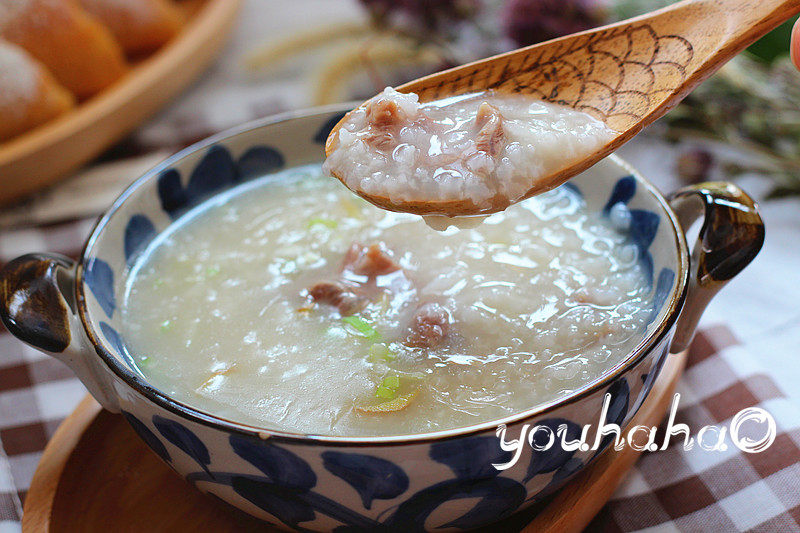 5:喜欢香葱的可撒上葱花,试试味,不够咸的可再加适量盐,再撒少许胡椒粉和麻油,粥就很正很正了。