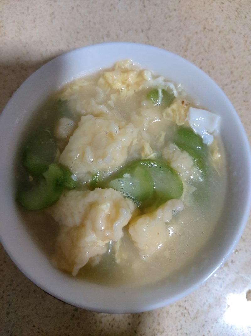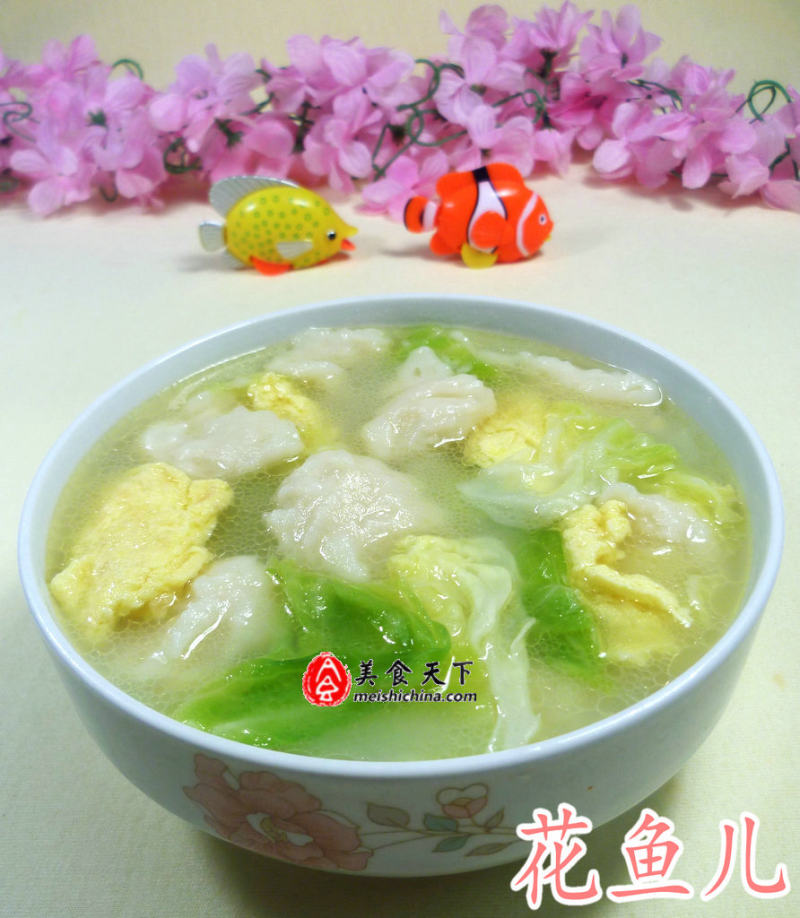 5:锅开后搅入面絮,打入鸡蛋,待再开后放入青菜,加入盐,胡椒,锅开即可食用
