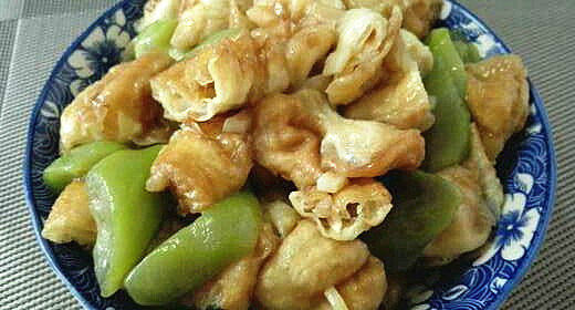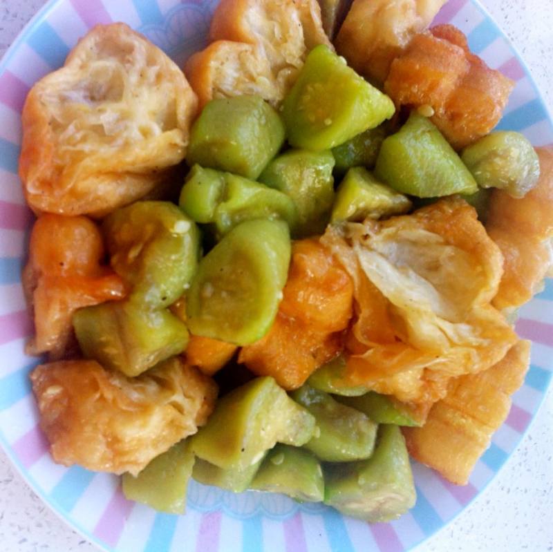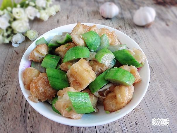 6:丝瓜炒软后放入油条翻炒翻炒。