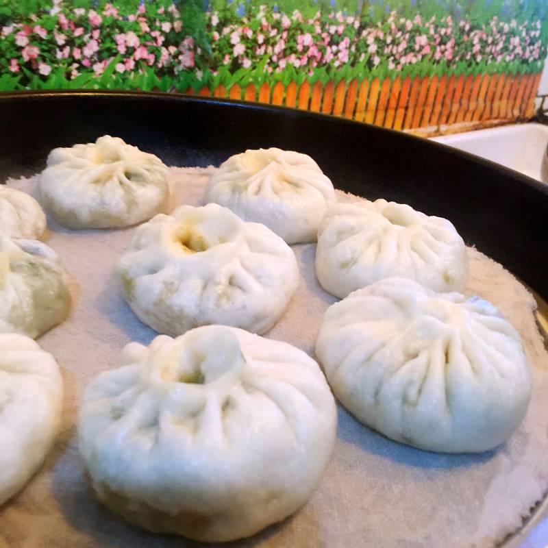15:蒸锅里提前放足够量的水,放上蒸屉和屉布,每包好一个包子,就码放在蒸屉上,盖上盖子,因为包子是没有经过基础发酵而直接包好的,所以在锅里的发酵时间约为30-45分钟,看环境温度来调整,比如现在已经入夏了,温度高,约30分钟就差不多可以蒸了。