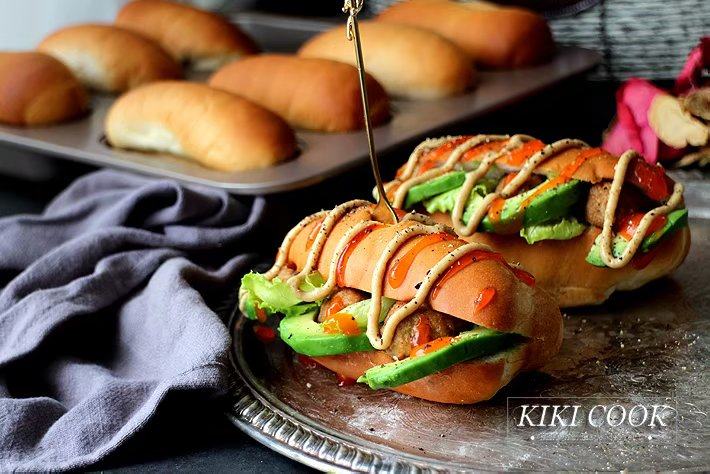 黄油40克;鸡蛋1个;细砂糖90克;酵母7克;肉丸适量;牛油果半个;芥末酱适量;番茄酱适量;
