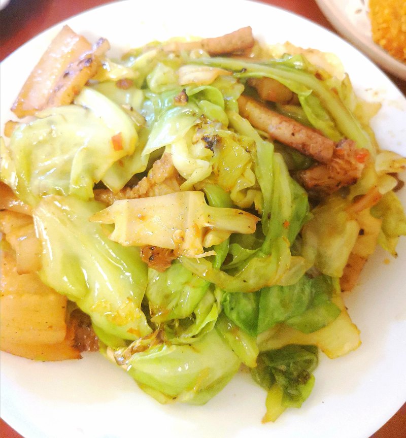 7:翻炒均匀,炒至卷心菜变软,加少许盐