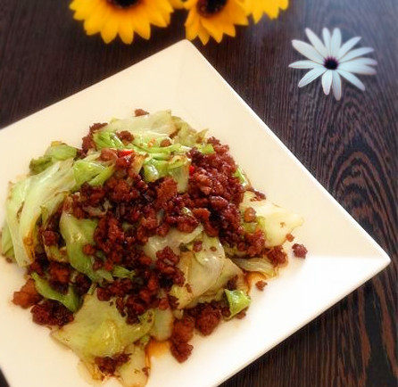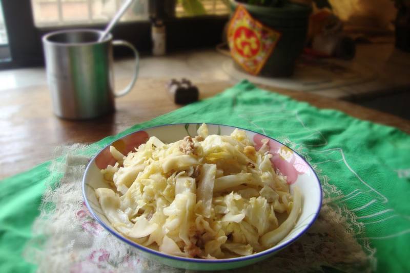 15:倒入煸炒好的卷心菜,拌匀,关火。