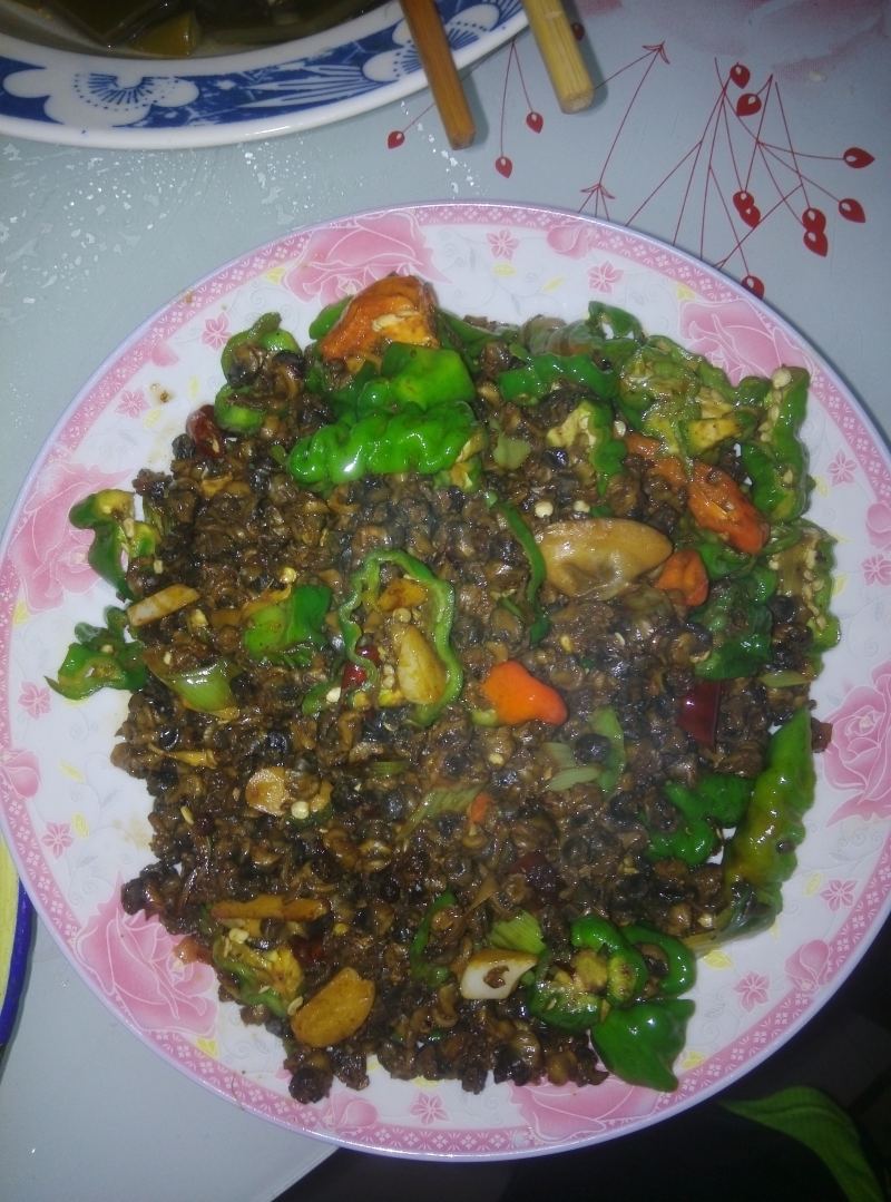 1:葱姜蒜切好下油锅。辣椒,青红辣椒