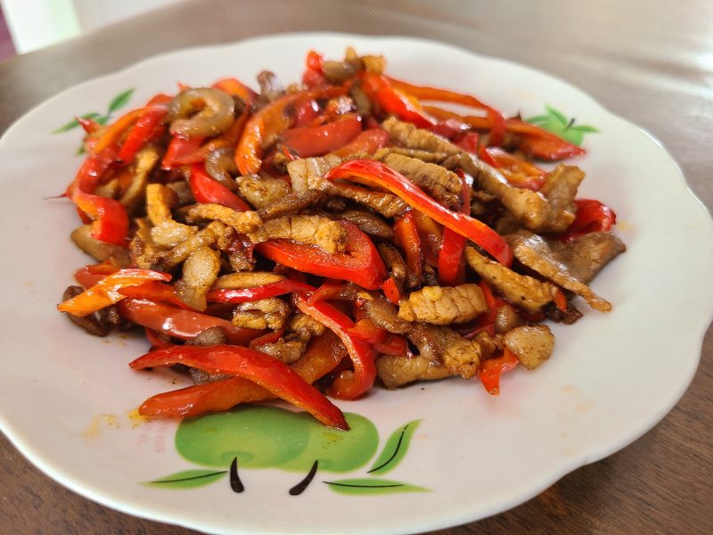 5:后倒入炒好的辣椒翻炒均匀即可出锅。肉丝和辣椒分开炒,炒出来的肉丝会更鲜嫩一些。也可以两者一起用大火爆炒。