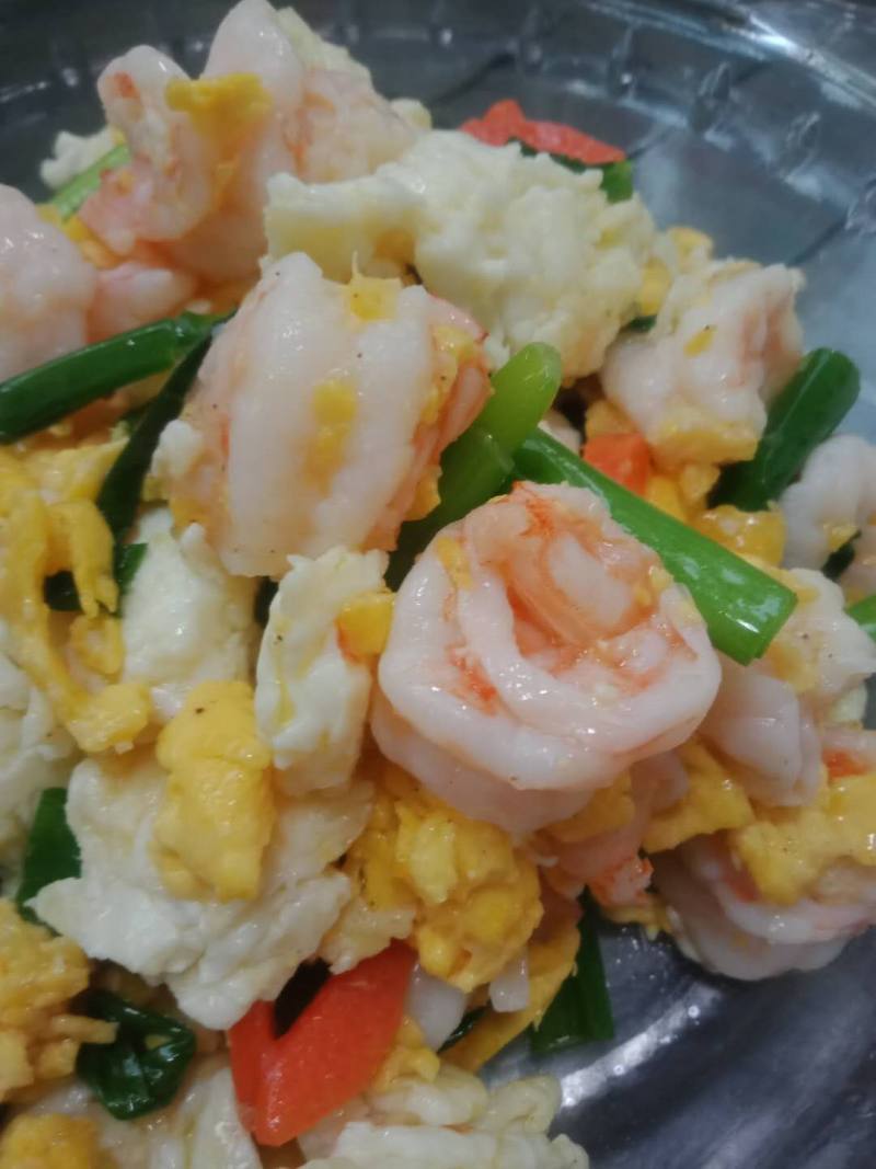 8:倒入虾仁,迅速翻炒到裹满蛋黄,盛出即可