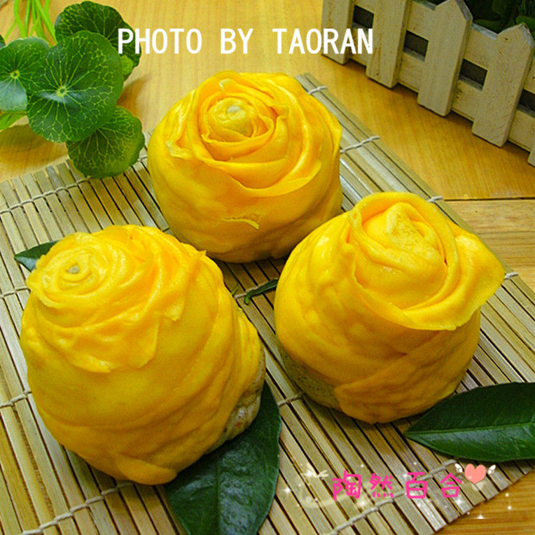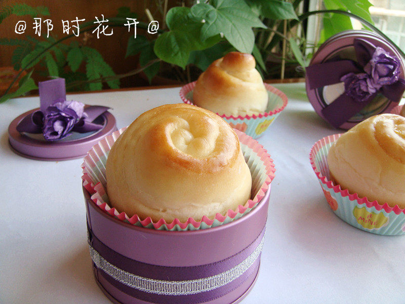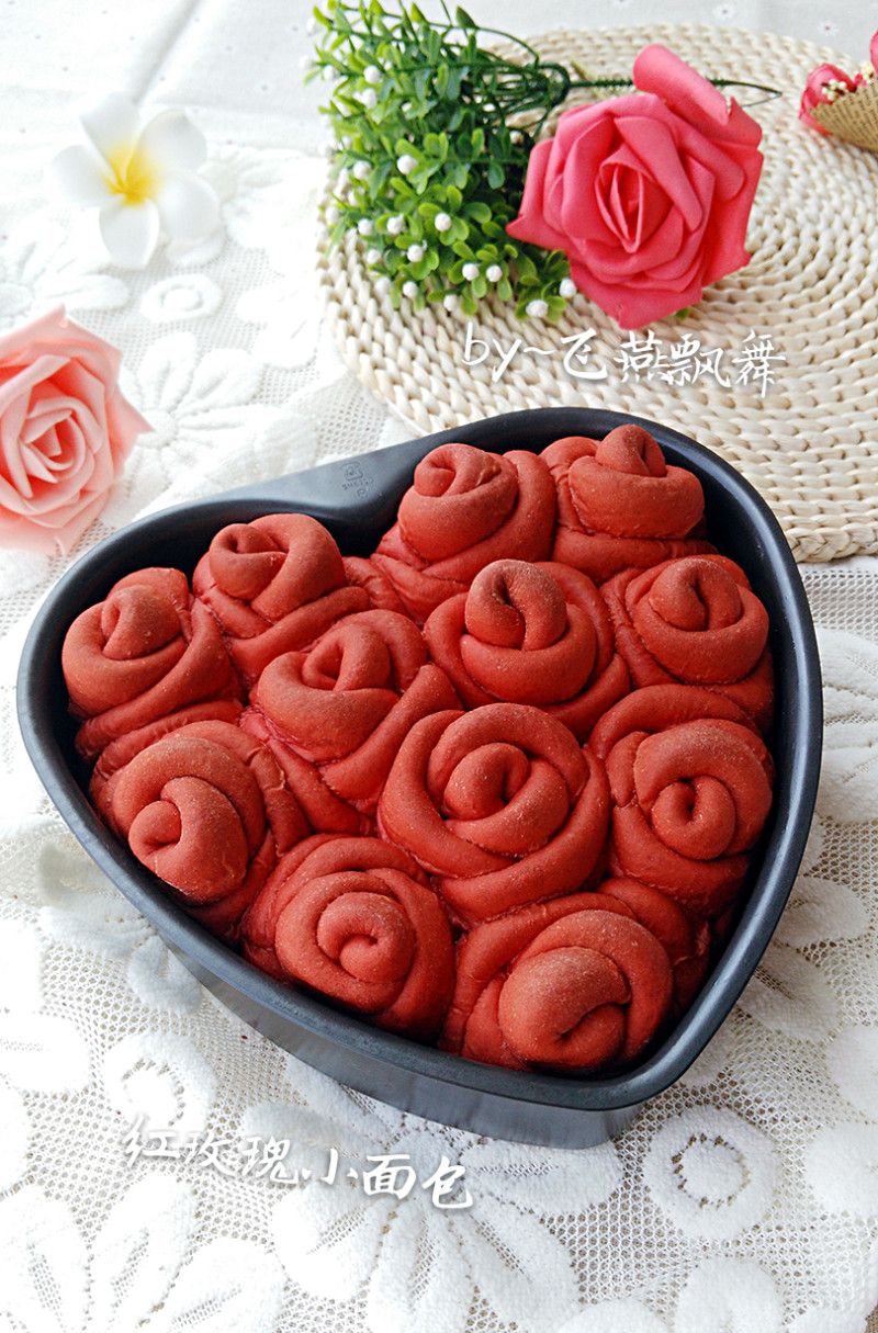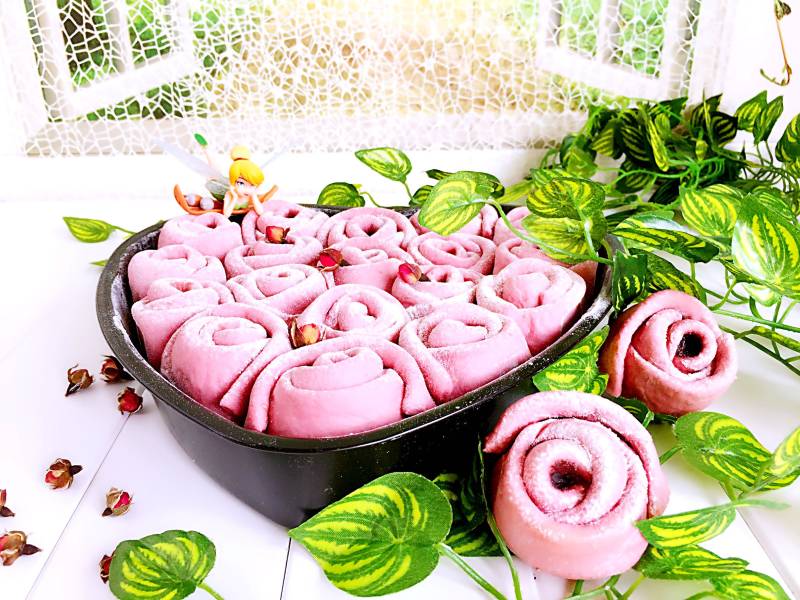 24:依次做好剩下的花瓣,这样一个玫瑰包就做好了,依次做好其余的玫瑰包。