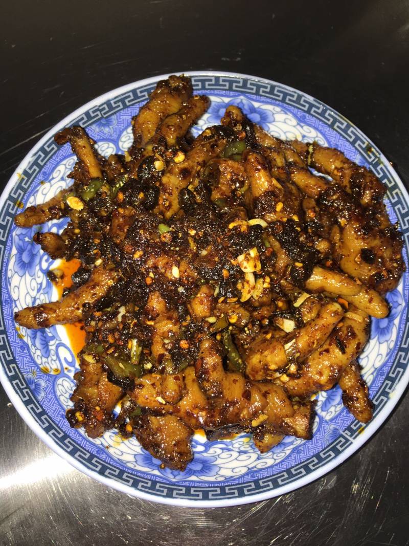 3:加入风味豆鼓老干妈2勺,放盐,鸡精调味即可出锅。