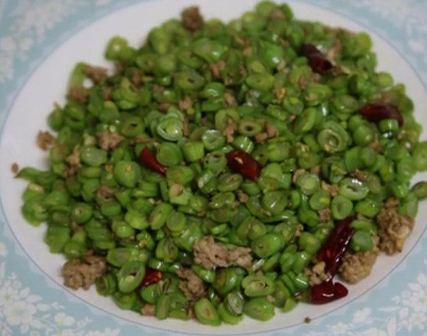 四季豆一定要熟透了才能吃。这个菜先焯水后煸炒,最后才跟炒好的肉拌在一起,这样可以保证肉质鲜嫩,四季豆的口感也恰到好处。