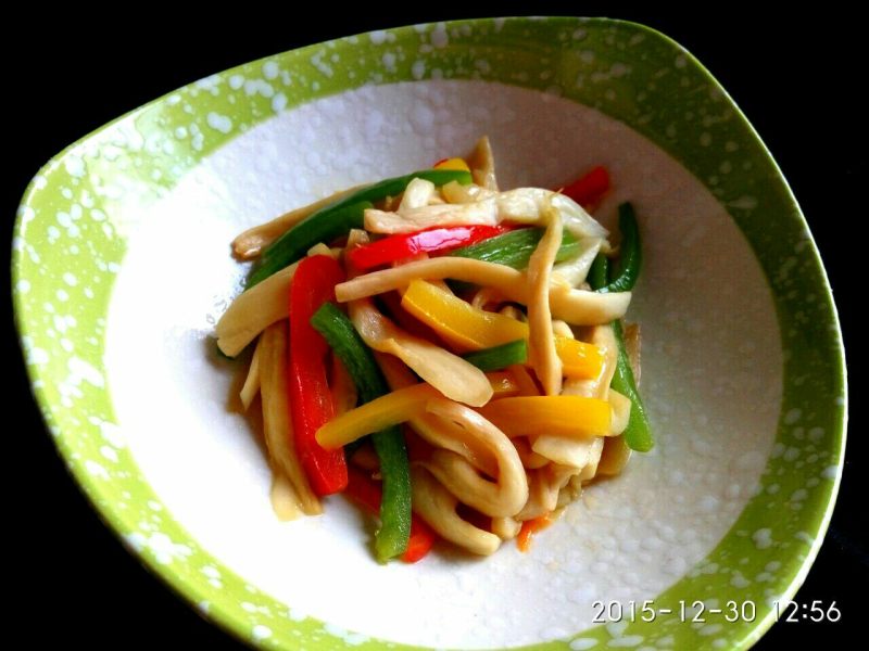 杏鲍菇1个;青椒1/4个;黄椒1/4个;红椒1/4个;