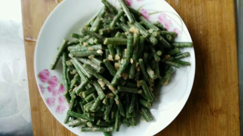 5:豆角控一下水后放入麻酱、蒜沫调一下,装盘,完工