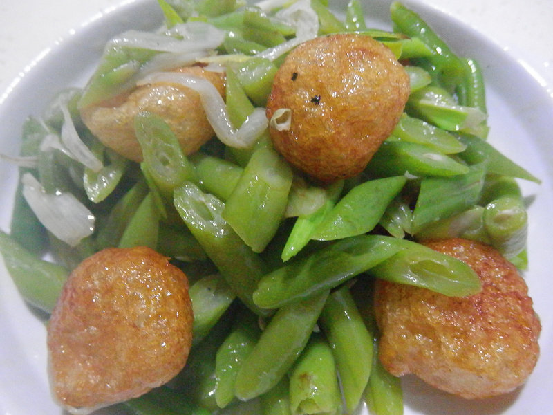 5:四季豆变色后放盐,酱油,黄酒调味。