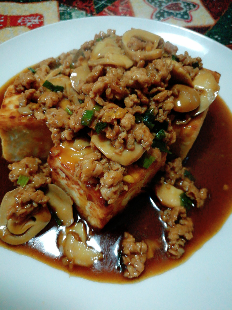 板烧豆腐烩鲜菇肉沫