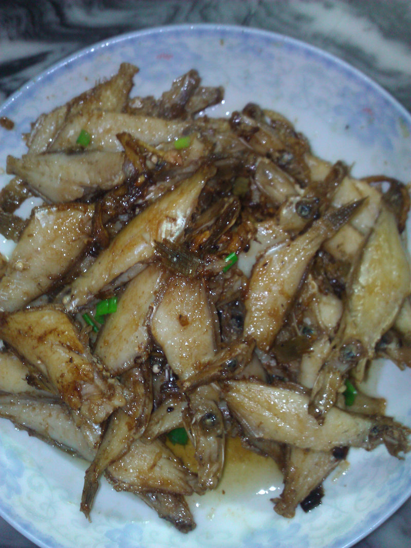 2:再另起锅,倒油把蒜末炒香,放入煎好的鱼,再依次放入老抽和少许生抽,白砂糖,盖上盖子,焖一会儿