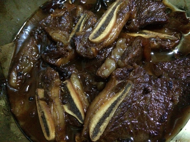 8:把烤盘再放入烤箱中层,再烘烤15分钟,把牛仔骨烤熟即可