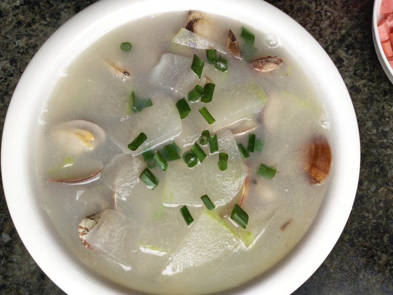 1:准备食材。花蛤清洗干净,冬瓜去皮切片。