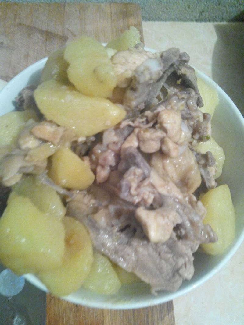 4:土豆鸡骨架都炖熟了,开大火收汁,出锅